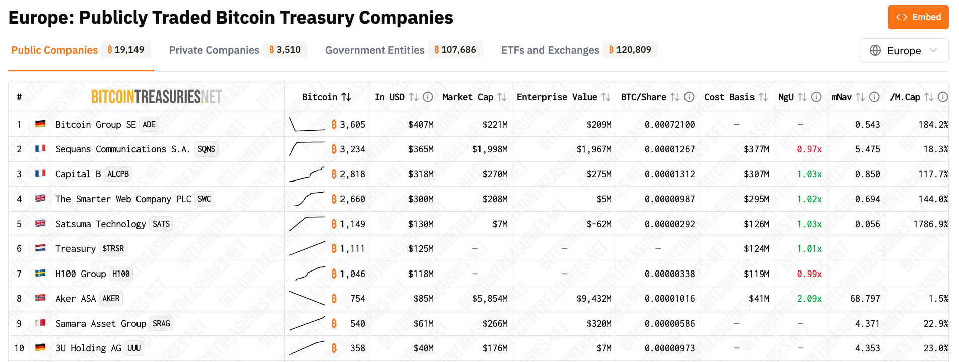 A growing category, Europe's companies are currently led by Bitcoin Group SE out of German, but competition from Sequans and Capital B remains fierce.